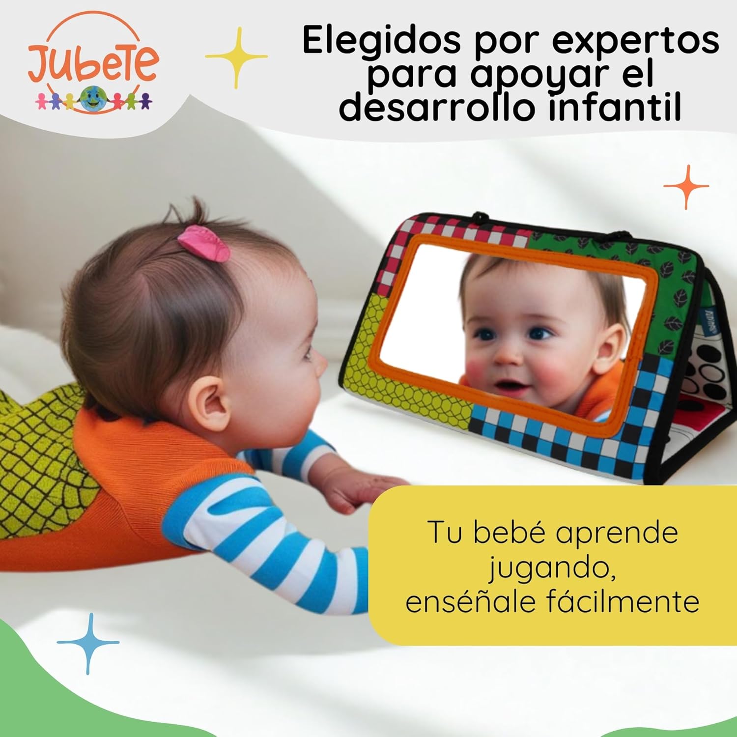 Selección cuidadosa de juguetes tipo Montessori bebés 6-12 meses y montessori bebé 0 a 6 meses para un aprendizaje temprano y significativo, incluyendo un espejo Montessori bebé -tummy time bebe – para la autoexploración. Brinquedos bebe 1 año