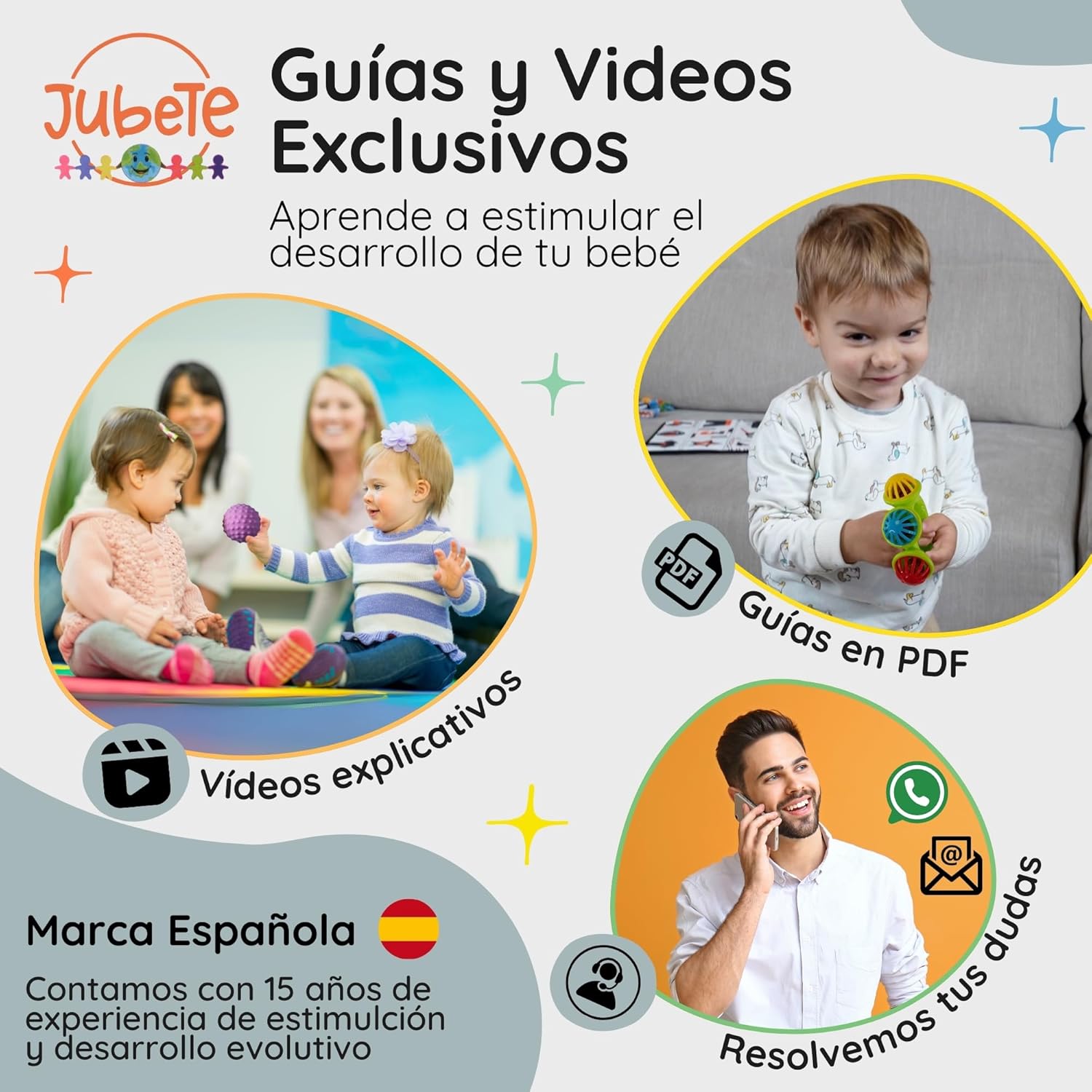 Como marca española comprometida, ofrecemos acceso a una web con guías sobre cómo utilizar cada juguete Montessori para bebés 0-6 meses y 6-12 meses, potenciando el desarrollo cognitivo y motor. Respaldados por expertos con +15 años de experiencia en desarrollo infantil. Para Aprender Jugando, escanea y ¡Descubre cómo!